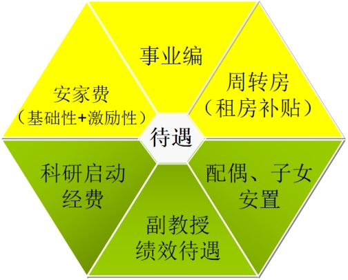 1.纳入省属事业单位编制管理,享受国家规定正常工资、福利、社保、公积金等待遇。入职五年内,中级及以下职称者享受副教授(专技7级)履职绩效工资待遇。