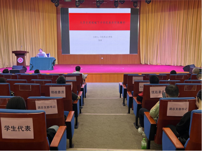 讲座中,张容博士围绕“四个共同”阐释中华民族内涵,解读上级文件核心要求,从“五个认同”“四对关系”“十二个必须”分析铸牢中华民族共同体意识重点,明晰其政治、理论与实践意义,帮助师生确立正确中华民族历史观。他结合历史脉络与实践案例,从政治、经济、文化、社会共同性视角,剖析中华文明与中华民族共同体、民族先锋队与中华民族共同体的内在联系,明确党对民族工作的领导是根本保证,为师生增强“五个认同”、构筑共有精神家园指明方向。