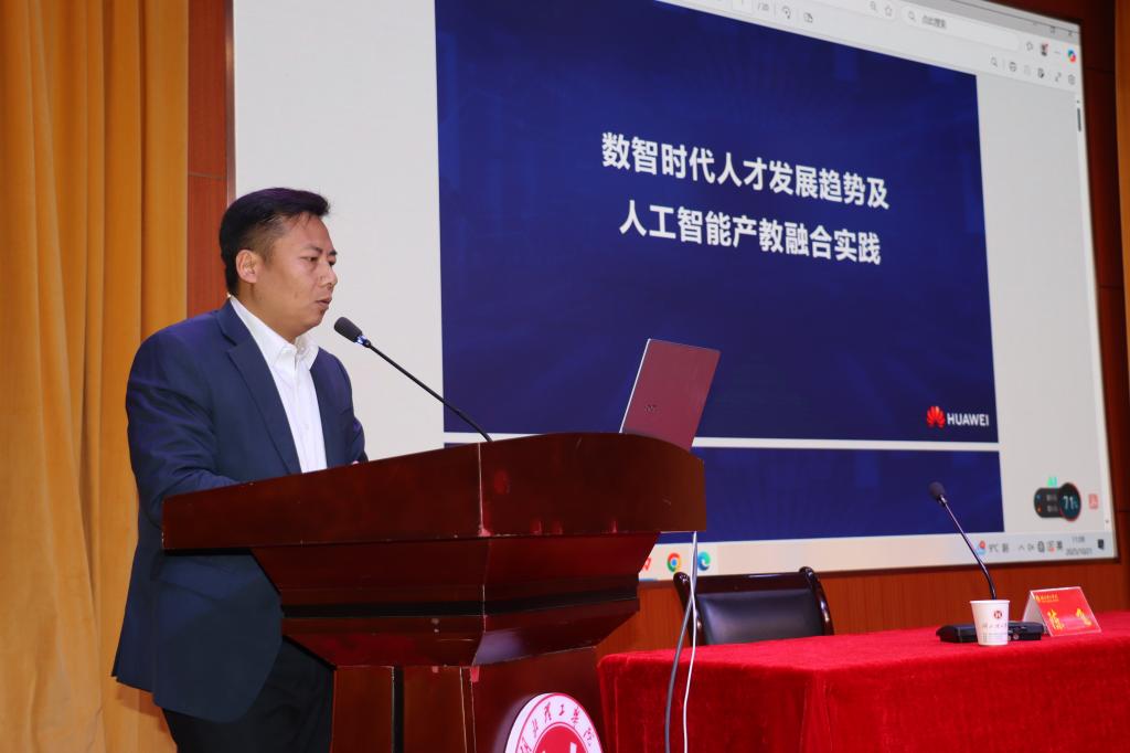 华为技术有限公司中国地区部湖北政企业务部人工智能生态经理陈飞以“数智时代人才发展趋势及产教融合华为实践”为题,从“数智人才发展趋势及挑战”“华为赋能智算产业人才发展实践”“产教融合校企共育数智人才”三个方面介绍数智时代人才需求与应对。他强调,企业智能化转型需在基础设施、数据和人才上大量投资,人才是智算产业发展与新型工业化实现的核心支撑。他希望深化与高校、企业、政府的合作,共育数智人才,推动AI技术落地千行百业,助力构建万物互联的智能世界。