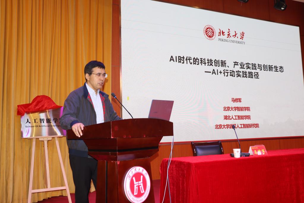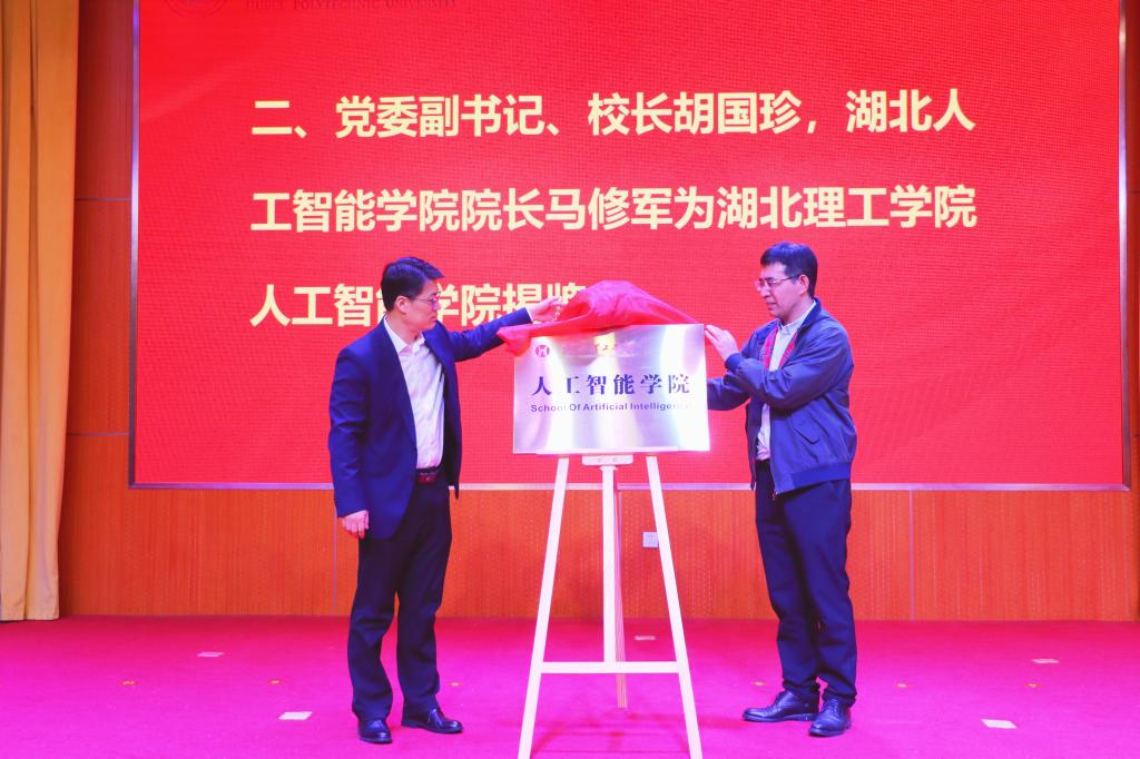 党委副书记、校长胡国珍,湖北人工智能学院院长马修军为人工智能学院揭牌。