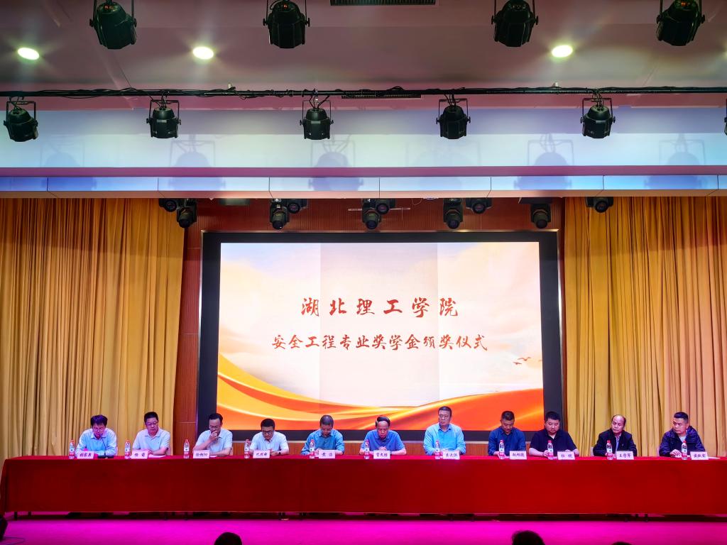 出席颁奖仪式的“政”方领导有黄石市应急管理局党委书记吴大洪、总工程师黄浩;“企”方嘉宾有大冶特殊钢有限公司安全部长、节能与安全应急现代产业学院副院长巴烈电,华新水泥股份有限公司东部区域安全总监、环保节能与安全应急现代产业学院副院长徐朝阳,湖北振华化学股份有限公司安全总监王学军,劲牌公司供应链管理部经理盛秋实,武钢资源集团金山店矿业有限公司副矿长杜键;“校”方领导有副校长肖文胜。教务处副处长赵旭德、环境科学与工程学院领导班子成员、安全工程专业全体教师以及在校生参加此次仪式。仪式由环境科学与工程学院院长张家泉主持。