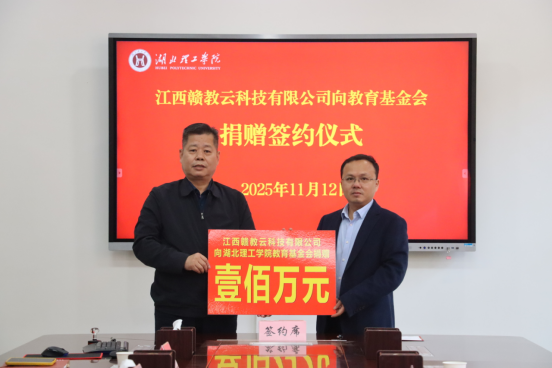 在双方的共同见证下,校企代表现场签署100万元的捐赠协议。协议签署后,冯运仿代表学校,向吕建军颁发捐赠证书,以感谢赣教云科技有限公司对我校教育事业的支持。