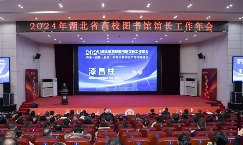 本网消息 近日,以“传承·创新·发展:新时代高校图书馆特藏建设”为主题的2024年湖北省高校图书馆馆长工作年会在黄冈举行。来自全省近140所高校图书馆的150余名代表参会。湖北省教育厅高教处二级调研员饶贵安,湖北省高校图工委秘书长、武汉大学图书馆馆长董有明出席会议并发表讲话。我校图书馆、档案馆馆长钟松应邀参加了会议。