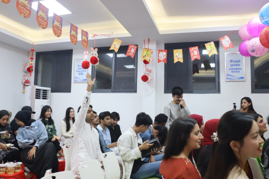 本网消息 为让留学生深度感受中国传统节日文化魅力,增进中外文化交流,9月29日晚,国际学院在“求知”一站式学生社区举办“月满华裳,共绘中秋”留学生中秋文化体验活动,活动由来自印度尼西亚和巴基斯坦的留学生DILAN TONGLO TIKUPADANG(龙梓轩)和SALSABEEL(萨比尔)主持,50余名师生齐聚一堂,共赴中秋文化之约。
