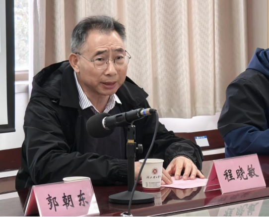 黄冈师范学院机电与智能制造学院党委书记郭朝东首先对湖北理工学院机电工程学院在硕士点申报工作中取得的成果表示热烈祝贺,直言“贵院的申硕成功为我们树立了标杆,此次到访就是抱着‘取经学习’的诚意而来”。他简要介绍了黄冈师范学院机电与智能制造学院的学科布局与发展规划,表达了在学科建设思路、申硕政策把握、资源整合路径等方面的学习诉求,期待通过深度交流,为自身学院学科发展与申硕工作注入新动能。