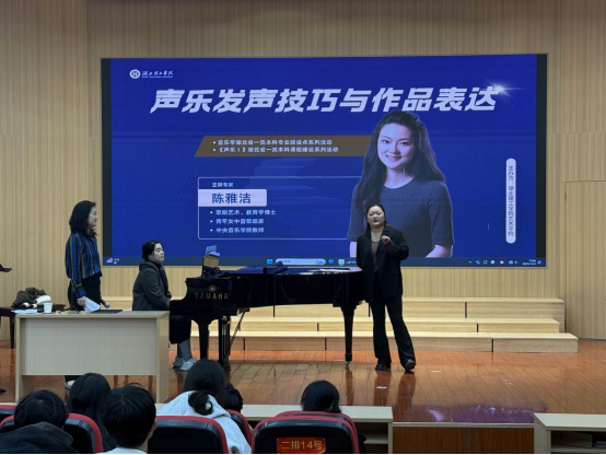 据了解,艺术学院将持续推进音乐学湖北省一流本科专业建设点及《声乐Ⅰ》《钢琴Ⅰ》省级一流本科课程建设,会定期邀请国内外知名专家学者到校开展讲学、交流活动,不断整合优质教育资源,为师生搭建更高层次的学习与发展平台,推动学院音乐专业建设与人才培养质量持续提升。(通讯员 韩雪静 黄昶皓 毕 然)