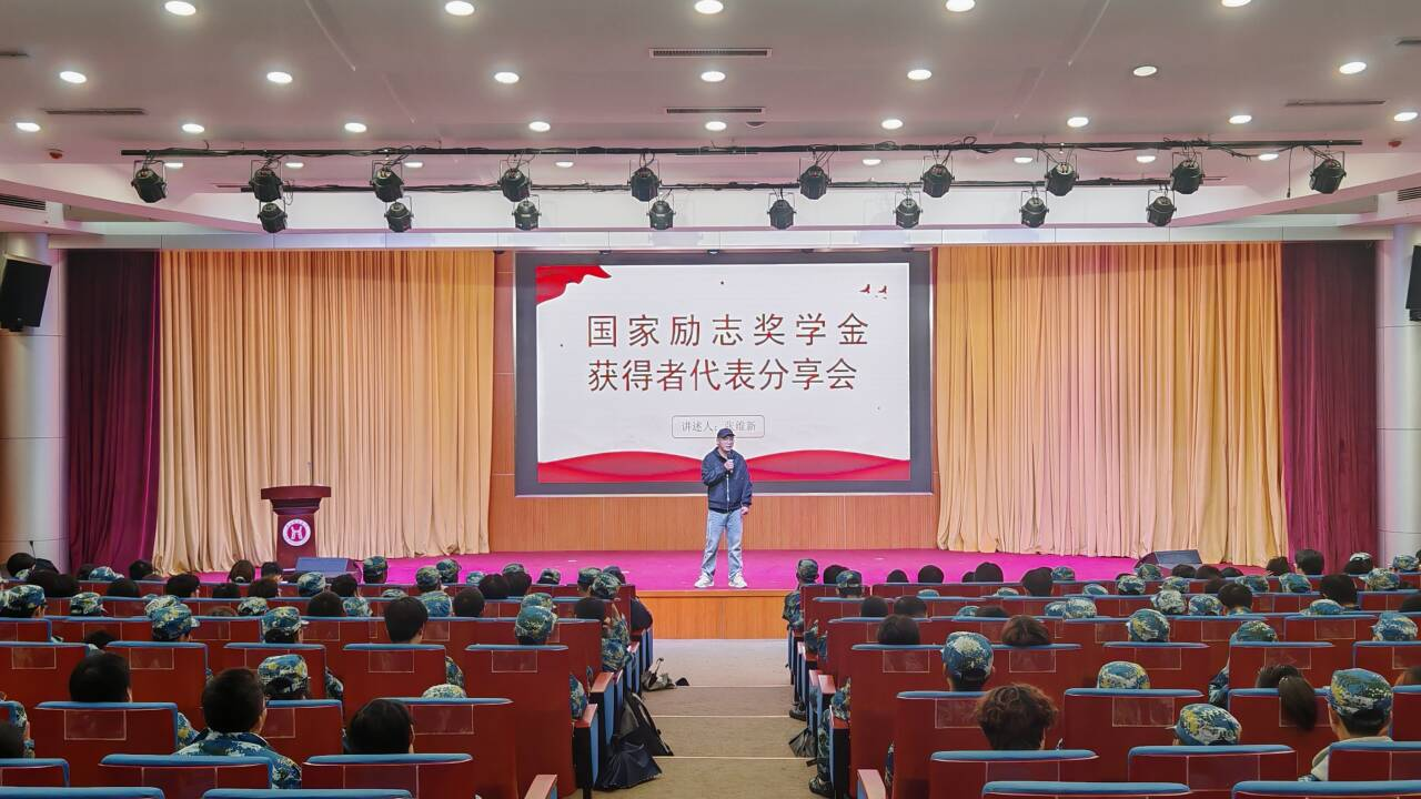 分享会上,国家励志奖学金获得者代表张维新以“新的环境,新的挑战,新的开始”开篇,强调“机会不光留给有准备的人,更留给勇敢解决问题、敢于克服困难的人”,鼓励同学们在大学新征程中主动出击、直面挑战。他以“小米舆论事件”为例,生动阐释信息爆炸时代,学子须具备理性判断、追本溯源的思维能力,这既是专业学习的底层逻辑,也是个人成长的核心素养。