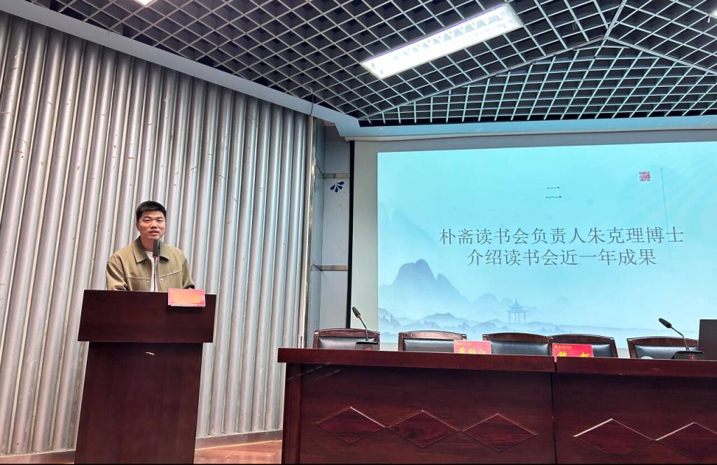 学校教务处处长蔺绍江发表了热情洋溢的讲话。他高度评价了读书会的育人成效,并指出,“朴斋读书会”是“导师制”落地的生动典范、“新文科”建设的先锋探索、“书香校园”氛围的核心引擎,为全校的教学改革与实践树立了卓越榜样。蔺处长鼓励朱克理博士、刘会龙博士、田彧博士、唐思语博士继续坚持下去,将读书会办成老师、同学沟通的平台、交流的沃土,让经典之光照进现实,滋养更多学子的精神成长。