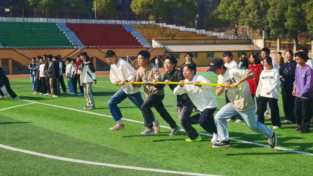 压轴登场的拔河比赛,将全场气氛推向最高潮。哨声一响,双方队员紧握长绳,力贯脚跟,为班级而战,为荣誉而战。红线在中线附近来回移动,胜负仅在毫厘之间。场边口号声、呐喊声、助威声震耳欲聋,各班队员更是将顽强拼搏、坚持到底的体育精神展现得淋漓尽致。
