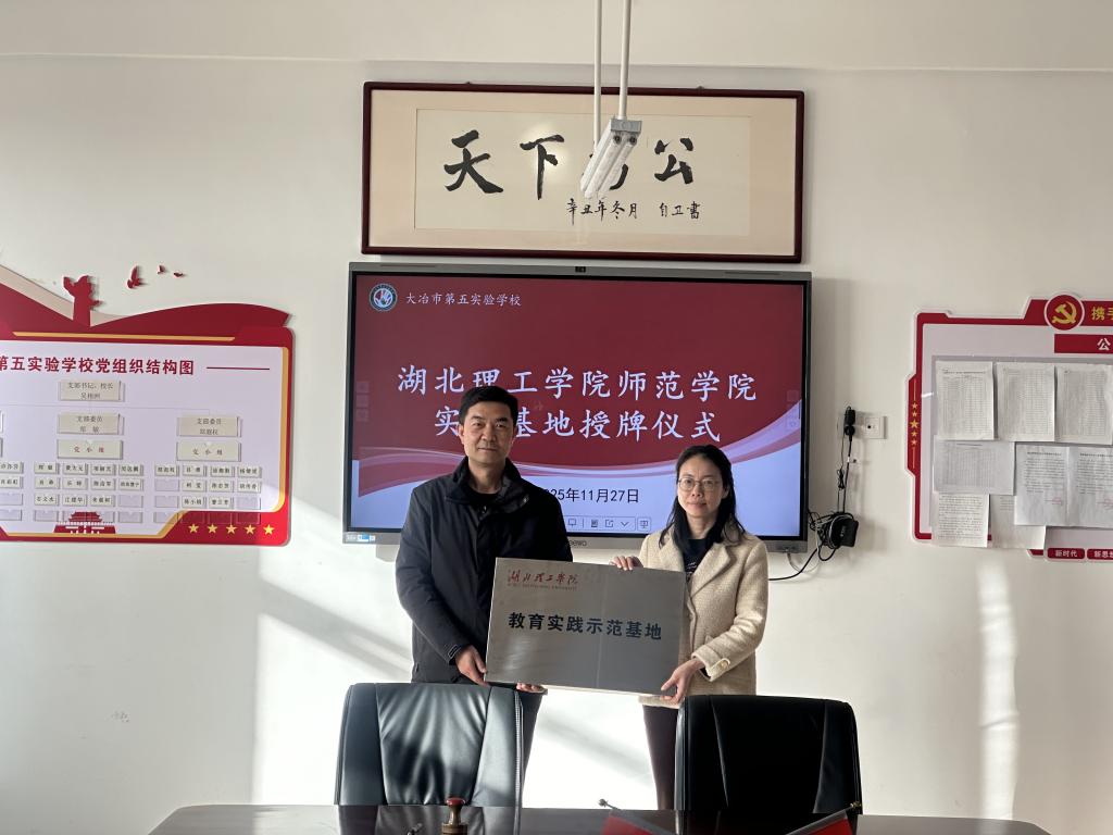 本网消息 为提升师范学生实践教学能力,师范学院与大冶第五实验学校签约,共建教育实习基地,开启院校协同培育高素质教育人才新篇章。