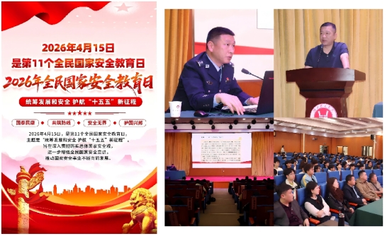 本网消息 今年4月15日是第十一个全民国家安全教育日,主题为“统筹发展和安全 护航‘十五五’新征程”。为深入学习贯彻总体国家安全观,切实提升全校师生国家安全意识和防范能力,筑牢校园安全防线,我校精心谋划、统筹推进,组织开展“国家安全教育日”主题宣传教育系列活动,通过形式多样、内容丰富的活动,推动国家安全知识进校园、进课堂、进人心,营造“人人关心国家安全、人人维护国家安全”的浓厚氛围。