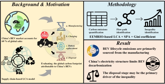 本网消息 环境科学与工程学院联合培养研究生袁旭东作为第一作者的研究论文,近日被国际权威期刊《Transport Policy》正式接收。该论文题目为“Unveiling the inequality and embodied carbon emissions of China's battery electric vehicles across life cycles by using a MRIO-based LCA model”,发表于中国科学院一区SCI期刊《Transport Policy》。该成果由湖北理工学院牵头,联合长江大学、天津大学、上海交通大学以及国家环境保护环境规划政策模拟重点实验室共同完成。