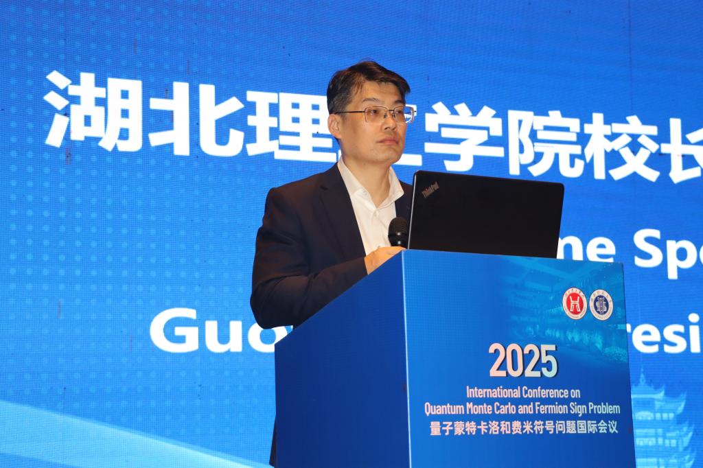 胡国珍指出,量子蒙特卡洛方法,作为解析多体量子系统复杂特性的核心工具,其发展潜力与技术瓶颈始终聚焦于同一关键命题—— 即困扰学界数十年的 “费米符号问题”。期待各位专家学者通过高水平学术报告与深度专题研讨,聚焦领域前沿问题,携手为破解“费米符号问题”、推动量子科学发展贡献智慧与力量。期盼湖北理工学院以本次会议为契机,进一步向各位专家学者学习先进经验,深化与各兄弟院校、科研院所的交流合作,共同开创计算物理与量子科学领域的崭新未来。